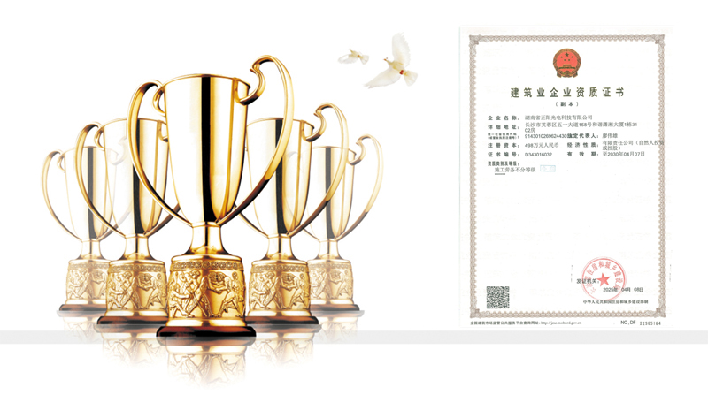 湖南省正陽光電科技有限公司是一家從事亮化工程及大型燈光藝術(shù)的設(shè)計、制作、安裝和維護于一體的專業(yè)化公司。公司資質(zhì)齊全、管理嚴謹、技術(shù)先進、實力雄厚,取得了城市及道路照明工程專業(yè)承包壹級資質(zhì)、照明工程設(shè)計專項甲級資質(zhì)、機電工程施工總承包貳級資質(zhì)、施工勞務(wù)等資質(zhì)、國家高新技術(shù)企業(yè)、國家“重質(zhì)量·守誠信”示范企業(yè)。